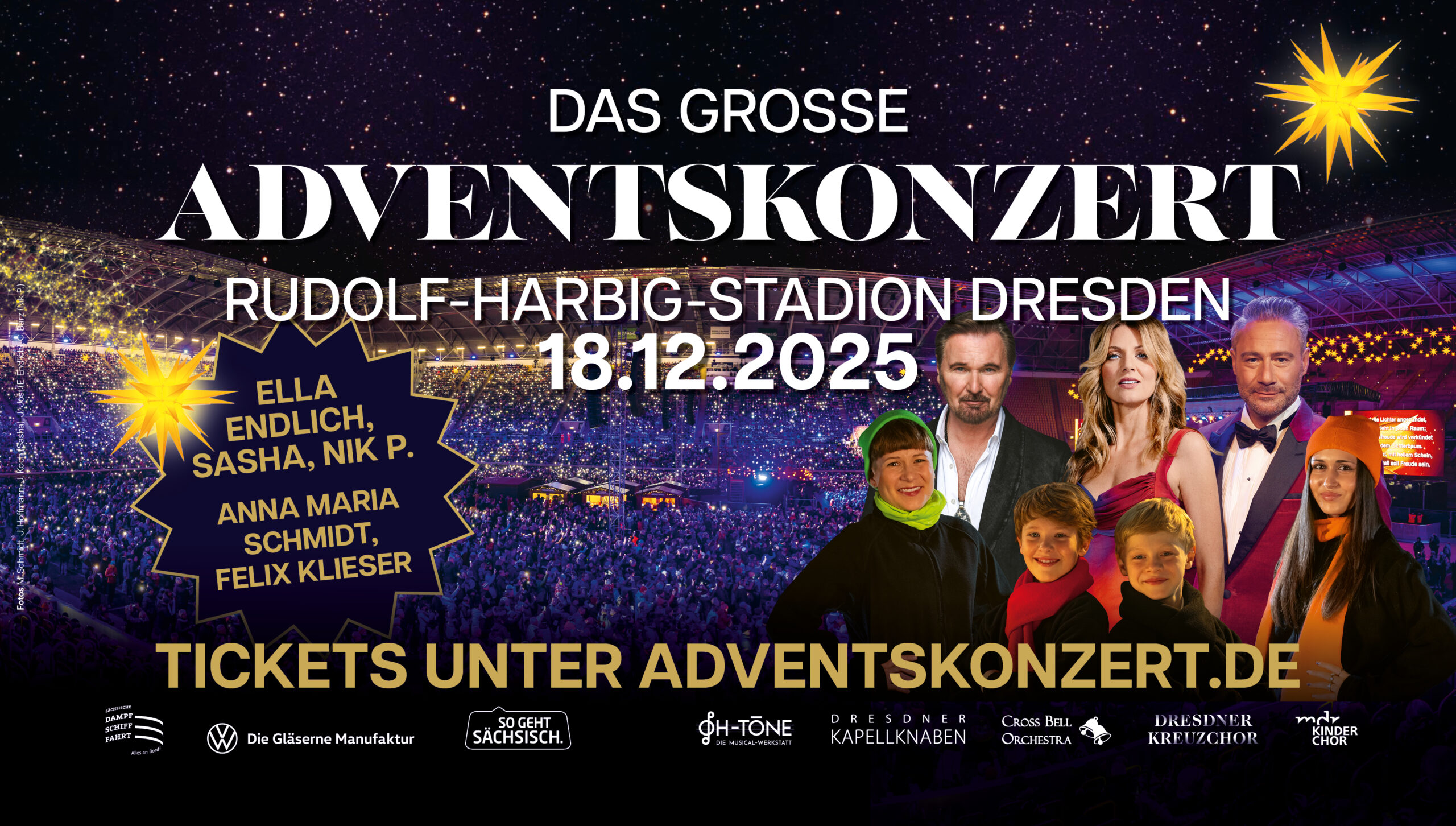 Medienpartner DDV Mediengruppe GmbH & Co. KG mit der Sächsischen Zeitung. Der Mitteldeutsche Rundfunk überträgt wie gewohnt das Große Adventskonzert.